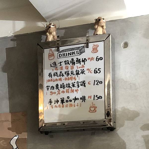 飲料的菜單在牆壁上:(可愛的字以及可愛的裝飾❤ 白板搭配金屬框有種復古電影院放映效果)